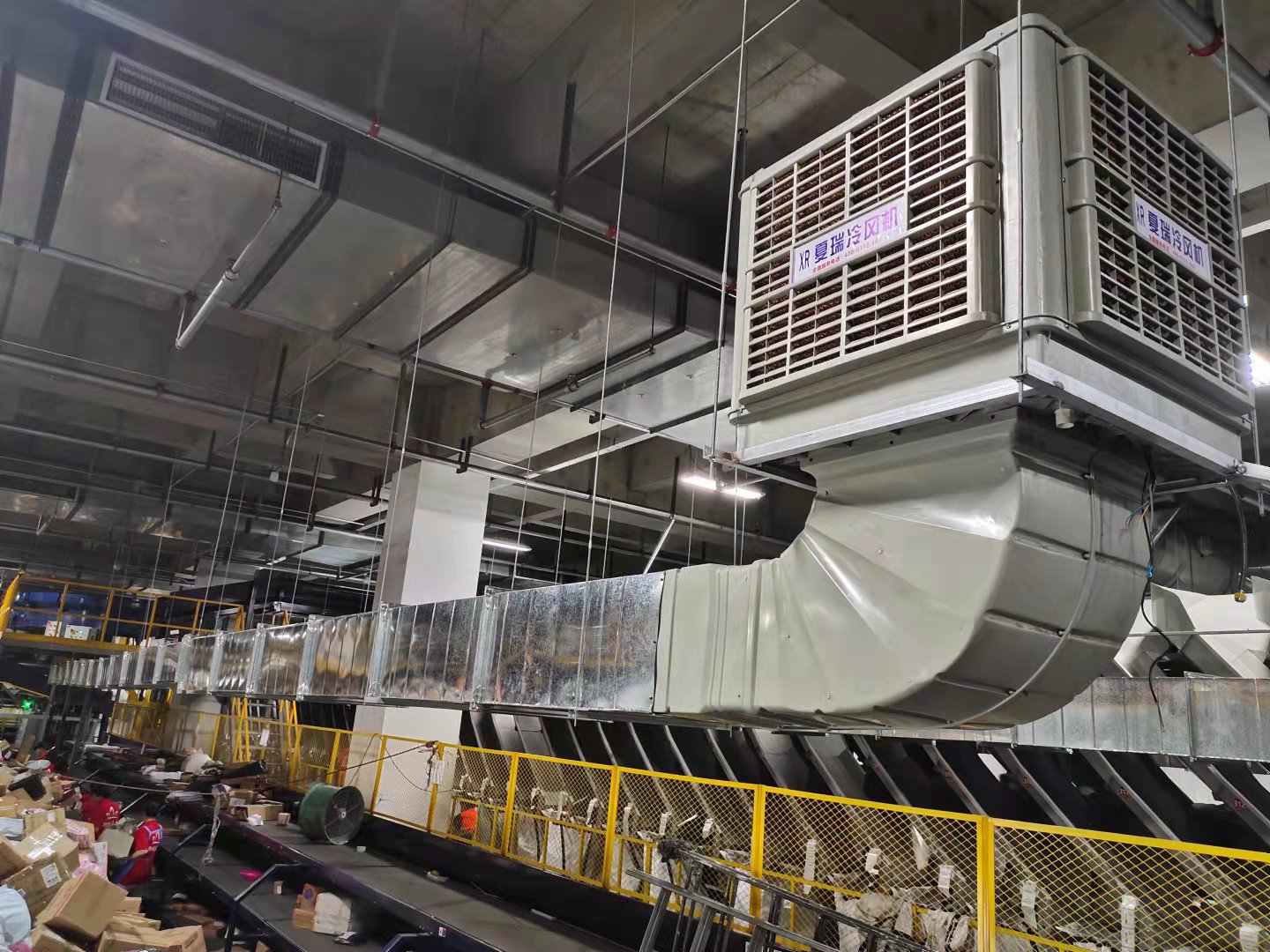 鄭州百世快遞運轉(zhuǎn)中心為于中牟普洛斯物流園,一期和二期面積一共有8萬平方目前冷風系統(tǒng)和大吊扇已經(jīng)交付使用,效果達到了客戶的滿意。